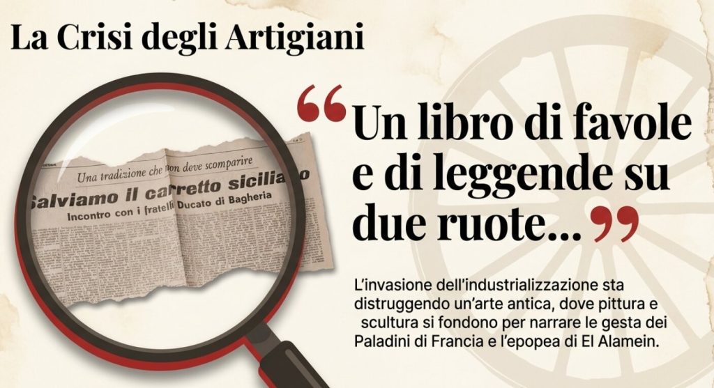L’articolo si presenta come un accorato appello per la salvaguardia di un’arte che, già nel 1965, rischiava di scomparire sotto i colpi della “civiltà meccanicistica”. Il carretto non viene visto come un semplice mezzo di trasporto, ma come un “libro di favole e di leggende su due ruote”, un oggetto d’arte dove pittura e scultura si fondono per raccontare le gesta dei Paladini di Francia, episodi biblici o fatti storici recenti come El Alamein.