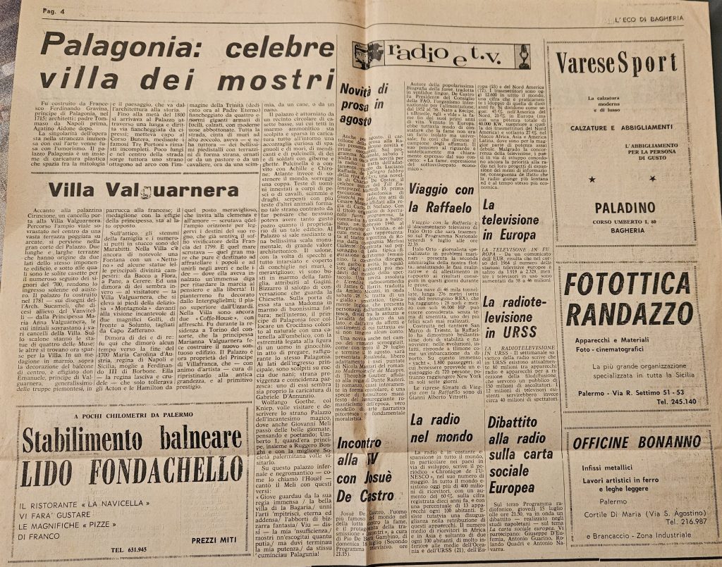 Chiudono la pubblicazione, a pag. 4, due articoli sulle ville Palagonia e Valguarnera; si leggono anche notizie varie di radio e Tv (apparentemente decontestualizzate).