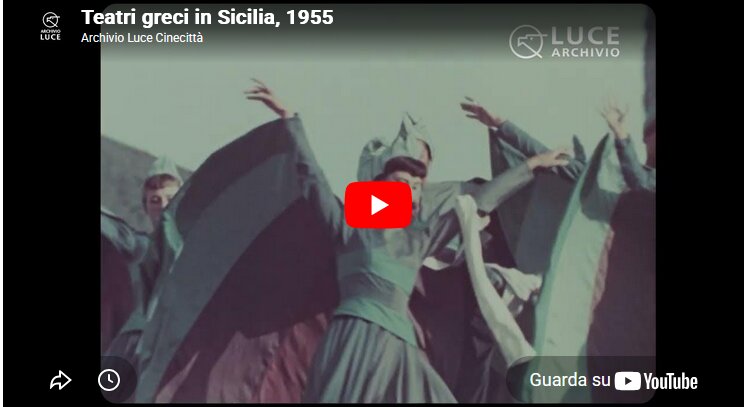Ieri su YouTube, in occasione della Giornata Mondiale del Teatro, l’Istituto Luce ha postato un interessante documentario del 1955, intitolato “Teatri greci in Sicilia” (link https://www.youtube.com/watch?v=16P_vxnzrcA).