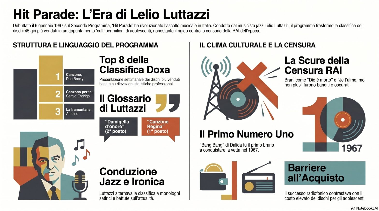 Venerdì 6 gennaio 1967, alle ore 13, sul Secondo Programma della radio (attuale Radio Due), andò in onda la prima puntata di “Hit Parade”, condotta dal musicista triestino Lelio Luttazzi.… Continua a leggere La “Hit Parade” di Lelio Luttazzi